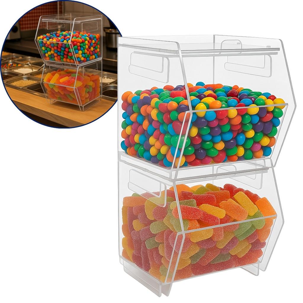 Baleiro Doces Balas Expositor Transparente Organização Comercial Residencial Armazenamento Guloseimas Bombons Chocolates Paçoca Pirulito Juju Marshmallow Festa Evento Loja Conveniência Padaria Mercado Balcão Vitrine Visual Limpo Acesso Rápido Tampa Proteç